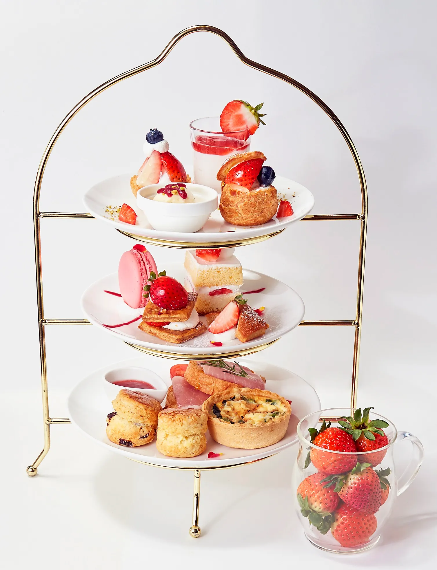 (いちごスイーツ(ショートケーキ、プチシュー、タルト、ミルフィーユ、マカロン、フィナンシェ)、パンナコッタ、バニラアイス、セイボリー、いちご)