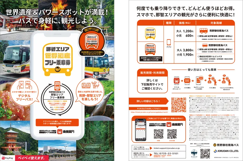 「那智エリア世界遺産フリー乗車券」をモバイルチケットで販売 熊野那智エリアの観光に便利でお得な乗車券