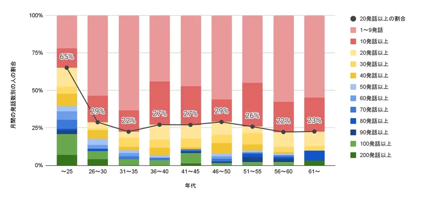 図1 年代別の発話数の集計
