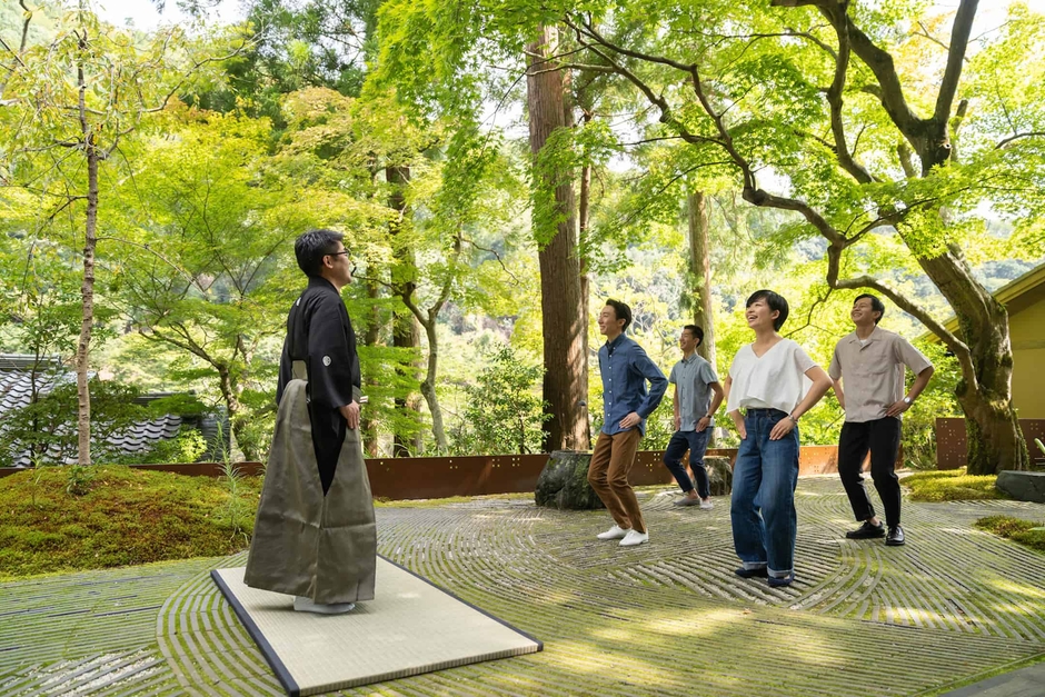 【星のや京都】~緑まぶしい庭で身体全体を使って笑い、日頃の疲れを癒す~狂言で迎える清々しい朝「新緑の青空狂言」2021年も開催|期間:2021年5月10日〜6月14日
