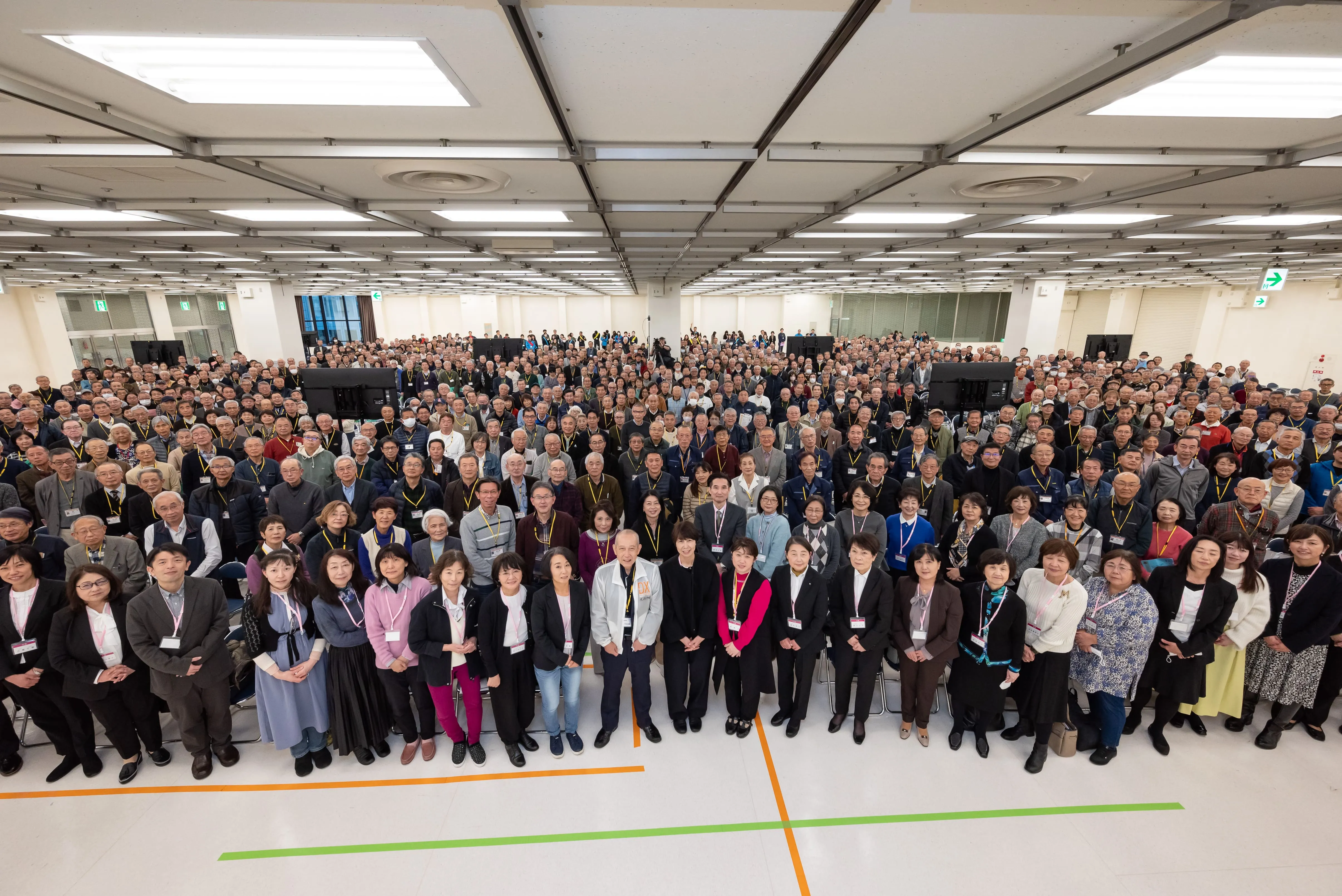 当日は、約1,000名(平均年齢約70歳・最高齢88歳)の代務員が参加し、チームごとにマンション現場の課題解決について話し合うショットガン討議やマンション管理業において特に重要となる清掃・挨拶の研修を実施しました。指導は、当社創立者であり、81歳になった現在も会長・社長を務める下田が自ら行います。