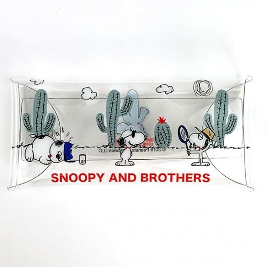 背景のサボテンが印象的な、クリアマルチケースです。オラフやスパイクも一緒で、スヌーピーも楽し気ですね。