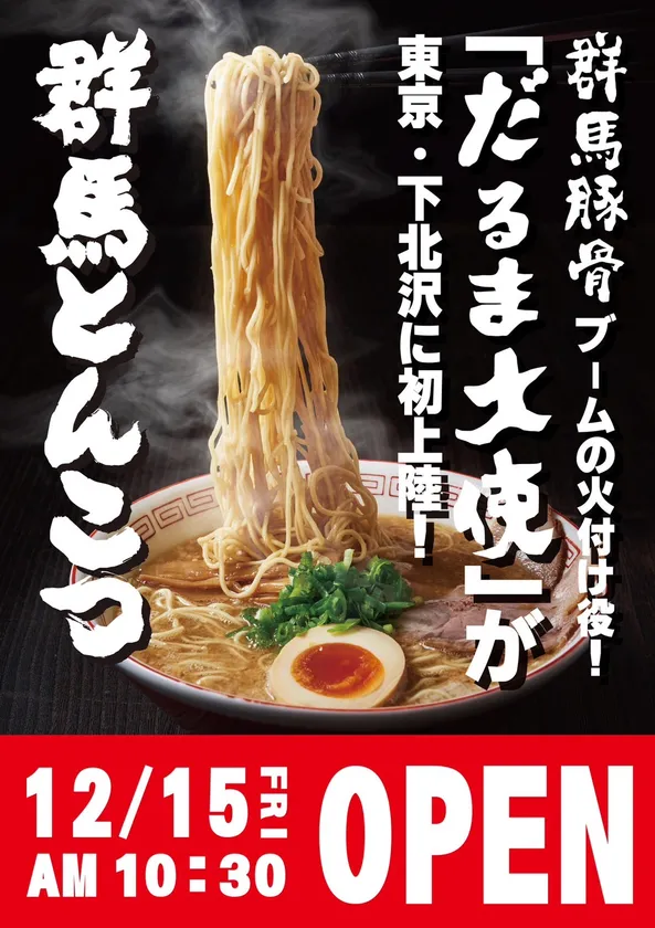群馬豚骨ブームを巻き起こした「だるま大使」を運営する株式会社 CREST(本社:群馬県高崎市)は、亡き先代の夢であった「東京出店」を実現させるべく、『だるま大使-無限-』を東京・下北沢に2023年12月15日(金)にグランドオープンいたします。