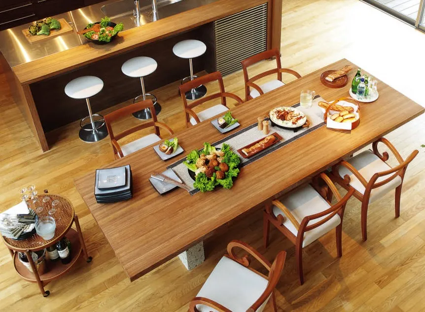 1.みんなが心地よい居場所づくり:年末年始に複数の家族が集まる家には、大きなダイニングテーブルがおすすめ。食卓をみんなで囲めるほか、おせちを詰める作業もみんなで参加しやすくなりますよ。年末年始だけでなく、普段の暮らしもランクアップ。夫婦が同じテーブルで作業をしても、お互い邪魔になりません。大勢が集まると賑やかで楽しい一方、気疲れしてしまうこともあるでしょう。そんなときは、座る場所があるだけでもほっと一息つけるもの。みんなの居場所になるソファや椅子を、普段からたくさん置いておくのが難しければ、アウトドア用の折り畳みチェアが便利です。
