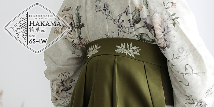 姉妹店夢館×京都きもの町によるオリジナル袴単品。トレンドのくすみカラーや合わせやすい濃色など4色展開。後ろの腰部分に入ったワンポイントの南天刺繍がお洒落。女性用スカートタイプ。卒業式、修了式におすすめ。