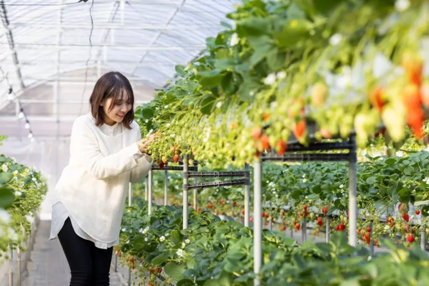 「こもろ布引いちご園」では、お正月(1月)から「いちご狩り」をお楽しみいただけます。小諸は昼夜に寒暖差が大きく、たくさんの日差しを浴びたいちごは、甘く宝石のように輝きます。暖かいハウス内でいちごを心ゆくまでご賞味ください。