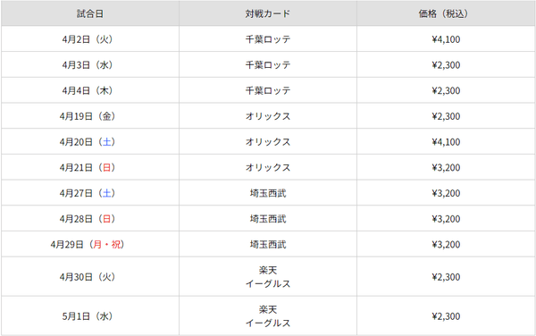※5月6日(月・祝)以降の試合は順次発売