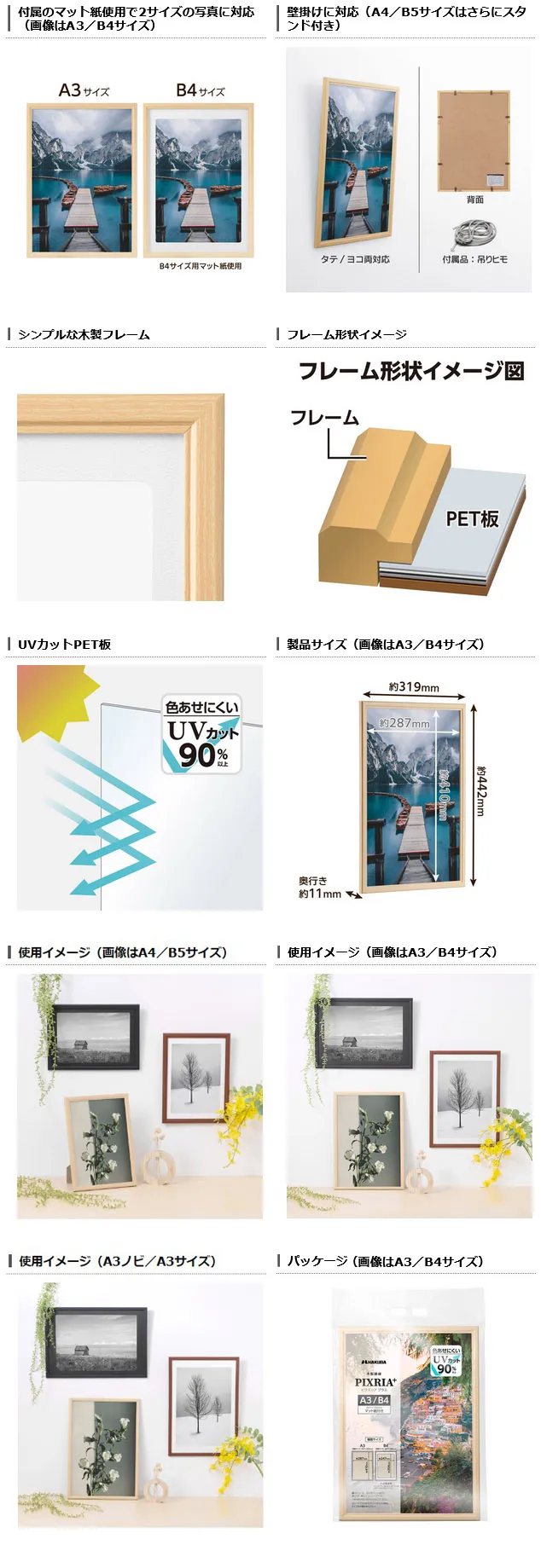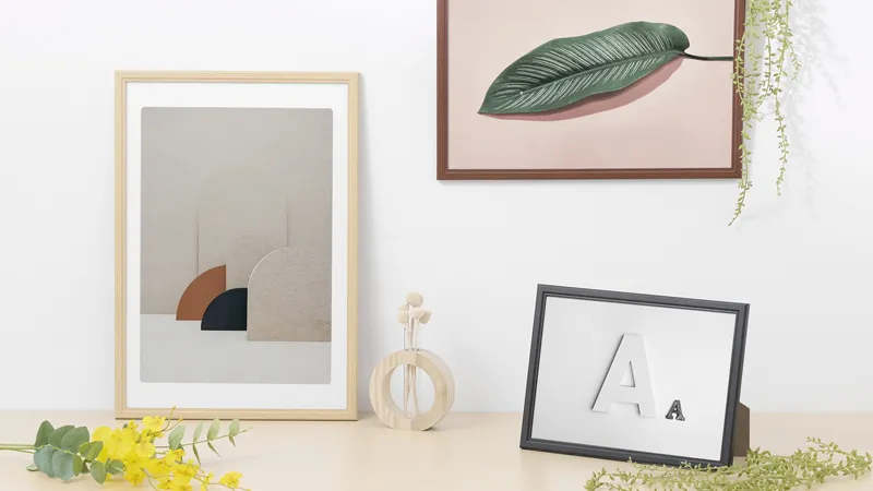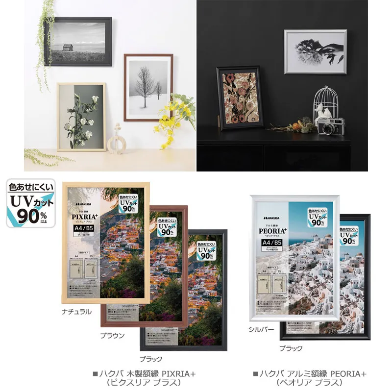 シンプルですっきりとしたデザインの木製額縁「PIXRIA+(ピクスリア プラス)」とアルミ額縁「PEORIA+(ペオリア プラス)」2種が新発売
