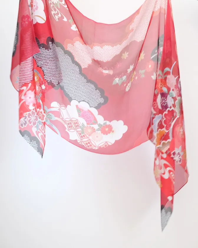 白絹に桜舞うストール(桜ホワイト)、水色絹に桜ゆらめくストール(桜スカイブルー)、赤絹に雲いざようストール(雲レッド)、紺絹に雲しのぶストール(雲ネイビー)、黒絹に熨斗ひとひらストール(熨斗ブラック)、銀絹に華輝くストール(熨斗シルバー)、紫絹に短冊なびくストール(短冊パープル)、銀絹に大菊あしらうストール(菊グレー)、緑絹に大菊そえるストール(菊オリーブ)、赤絹に大菊つどうストール(菊レッド)、紺絹に大菊ひそむストール(菊ネイビー)、黒絹に大菊さわぐストール(菊ブラック)、黒絹にバラ乱れるストール(薔薇ブラック)、黒絹にユリ誇るストール(百合ブラック)、青絹にユリ漂うストール(百合ブルー)、橙絹にユリ佇むストール(百合オレンジ)、赤紫絹に華やぐ胡蝶蘭ストール(胡蝶蘭パープル)、銀絹で冴える胡蝶蘭ストール(胡蝶蘭シルバー)、桜色に芍薬なじむストール(芍薬サーモンピンク)、若草色に息吹感じる芍薬ストール(芍薬グリーン)