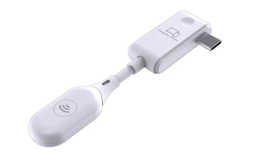 「Compact Mate 2」は、重さ13gのUSB Type-C(注1)に対応した送信機(C1)と19gのHDMI受信機(R1)の構成で、パソコンやタブレット、ゲーム機などのUSB Type-C端子に取り付けた送信機から、フルHDの映像を大画面テレビやモニター、プロジェクターにワイヤレス投映できます。