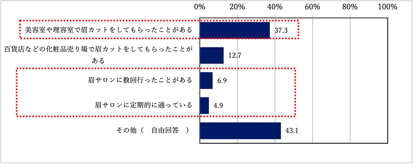 その他(自由回答)では、「床屋で整えてもらう」、「自分で整えてる」、「眉の手入れをしたことが無い」などの回答がありました。