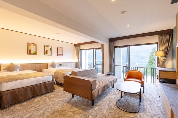 箱根の伝統工芸「寄木細工」から着想を得たモダンな空間で、雄大な山々を望むロケーションはまさに隠れ家のような非日常を味わうことができる大人の温泉リゾートホテルです。