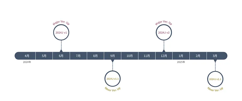 製品の品質向上および充実した機能の提供のため、ComponentOneのリリースサイクルを変更します。これまで年3回のメジャーバージョンアップを実施しておりましたが、2024J v1以降は「年2回のメジャーバージョンアップ」に変更します。これに加えて、原則「年2回のマイナーバージョンアップ」も実施します。