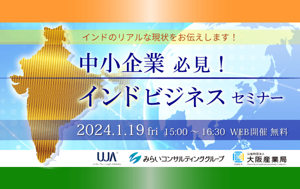 本提携を記念し、2024年1月19日(金)に中小企業向けインドセミナー(ウェブセミナー)を開催します。これからインドに挑戦したい中小企業の皆さまが、最初に知っておくべき情報や、具体的な成功例と失敗例、インド人との接し方、考え方等のポイントをお伝えします