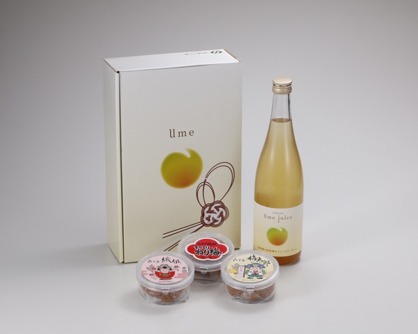 セット内容:梅ジュース 720ml、梅干し 100g、小梅干し 100g、ねり梅 110g