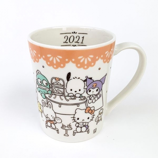 サンリオのキャラクター達がプリントされているとっても可愛いイヤーズマグが登場です。沢山のキャラクターが登場する華やかなデザインで、内側には「2021」のロゴがあります。毎年大人気で、容量も350mlとしっかり入り安定感のある形なのでティータイムもゆったりとお楽しみいただけます◎箱入りなのでギフトやプレゼントとしても喜ばれると思います♪