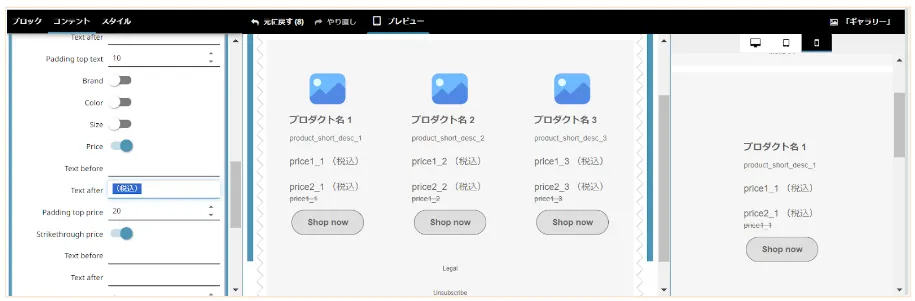 例えば、データベースの「price」を表示させる枠の前後に、「標準価格」や「(税込)」などを追加して、「標準価格 price(税込)」と表示させることが可能になるなど、より適切な表現に変更できるようになります。