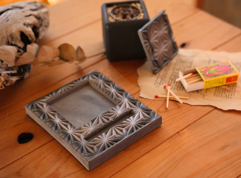 愛媛県の「菊間瓦」は、一般家屋だけでなく神社仏閣や歴史的建造物に多く使用されてきた愛媛の伝統産業ですが、市場の縮小と後継者不足により、その数を減らしています。100年先に菊間瓦を残すべく、新たな菊間瓦活用の形を模索しています。その第一歩として瓦素材を使った卓上焚火台を開発しました。