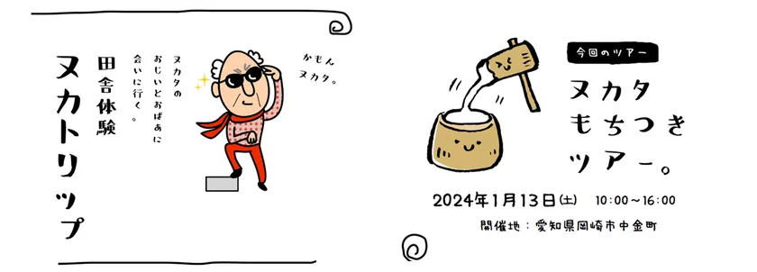 岡崎ビジネスサポートセンター(センター長 高嶋 舞、愛知県岡崎市、通称 オカビズ)がサポートをする、地域おこし協力隊として活動をしている松田 紗代(岡崎市)は田舎体験プログラム「ヌカトリップ」を始動します。その第1弾として1月13日に「もちつきツアー。」を実施します。