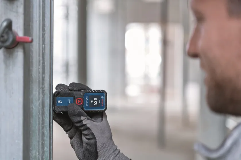 レーザー距離計「GLM 30-23」で測定中