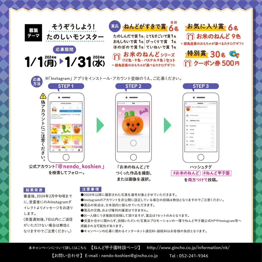 申込み方法 :ご応募には、ねんど甲子園公式Instagramアカウント