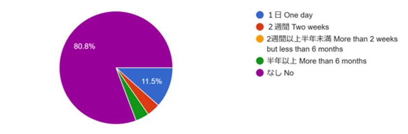 調査では、下記のグラフの通り特徴的な結果が出ました。母国帰国を視野に入れている外国人留学生の2週間以上のインターンシップ参加率はなんと1割を切っていました。