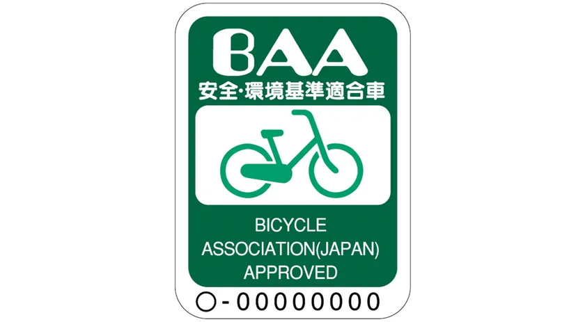 BAAマークは、一般社団法人自転車協会が定める自転車安全基準に適合した自転車に貼られています。自転車安全基準には全部で約90項目の検査項目があり、ブレーキ制動性能、フレーム・駆動部の強度、ライトの光度、リフレクターの反射性能などの検査に合格する必要があります。