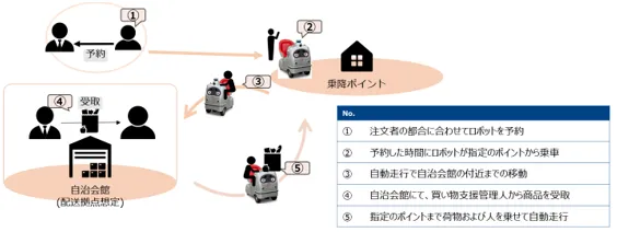 パーソナルモビリティを活用した移動支援サービスおよび自治会館を拠点とした買い物支援サービスをトライアル実施し、その利便性や事業性について検証を行います。