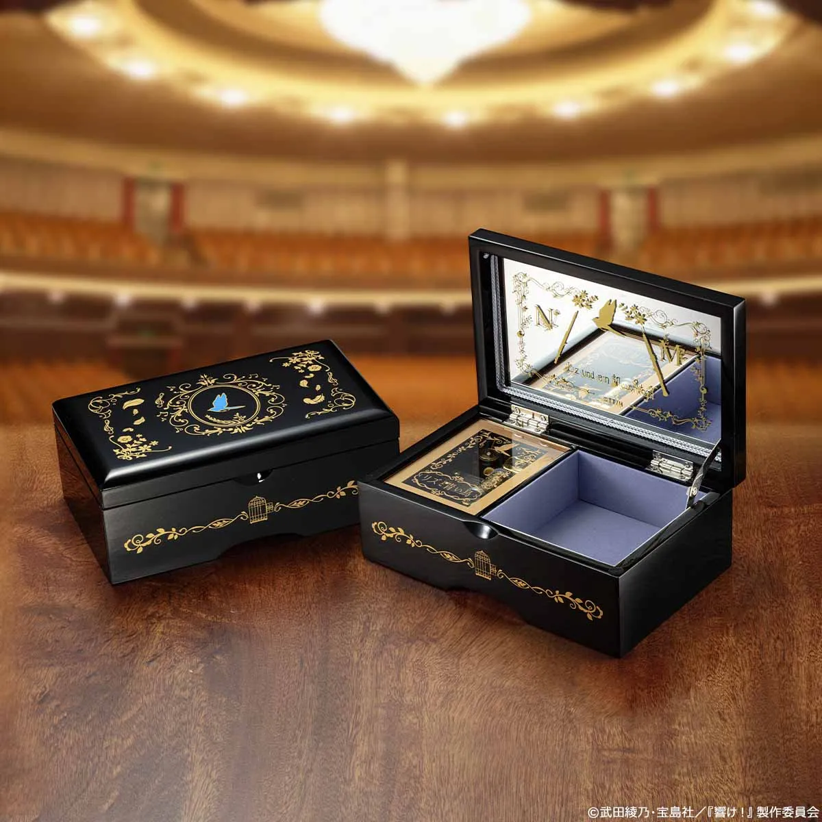 『リズと青い鳥』5周年を記念して 希美とみぞれの想いが交錯する第三楽章のオルゴールボックスが登場♪ 美しい楽器を思わせる漆黒の本体は伝統工芸「会津塗」によるもの