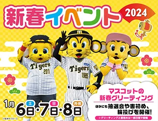 このイベントでは、阪神タイガース選手のサインボールなどが当たる抽選会や縁日コーナーのほか、7日(日)には書初め体験を、8日(月・祝)には阪神タイガースのマスコットによる新春グリーティングを開催するなど、お子さまから大人の方までお楽しみいただけるイベントをご用意しています。
