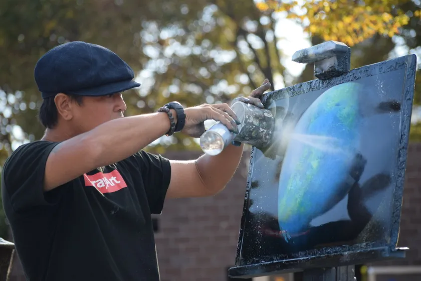 1日かけて壮大なスプレーアート作品を制作「アートパフォーマー☆ファイター」