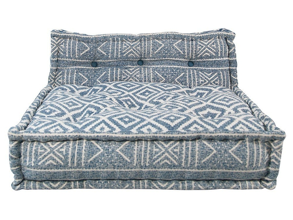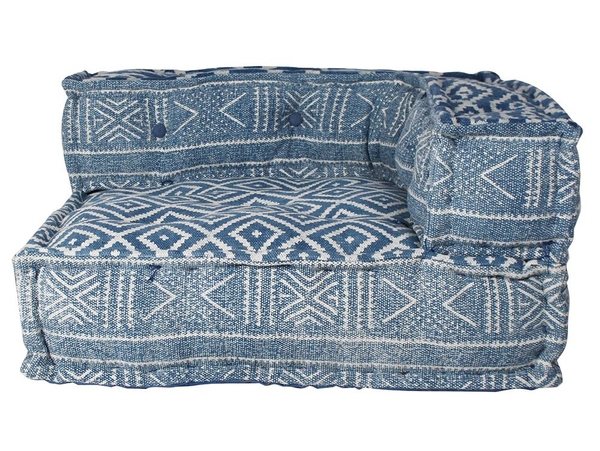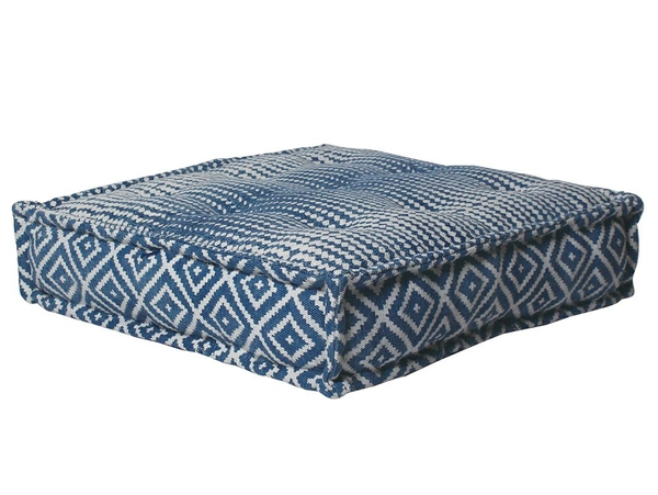 幾何学模様のブルーは、アイアン家具や木製家具と相性抜群です。