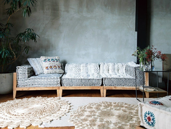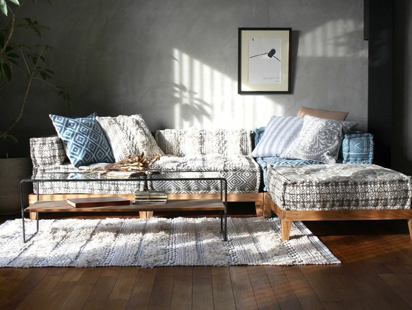 天然素材を丁寧に織ったファブリックをふんだんに使用したソファです。