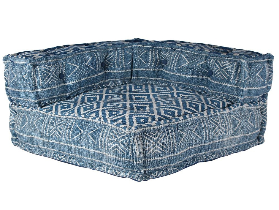 幾何学模様のブルーは、アイアン家具や木製家具と相性抜群です。