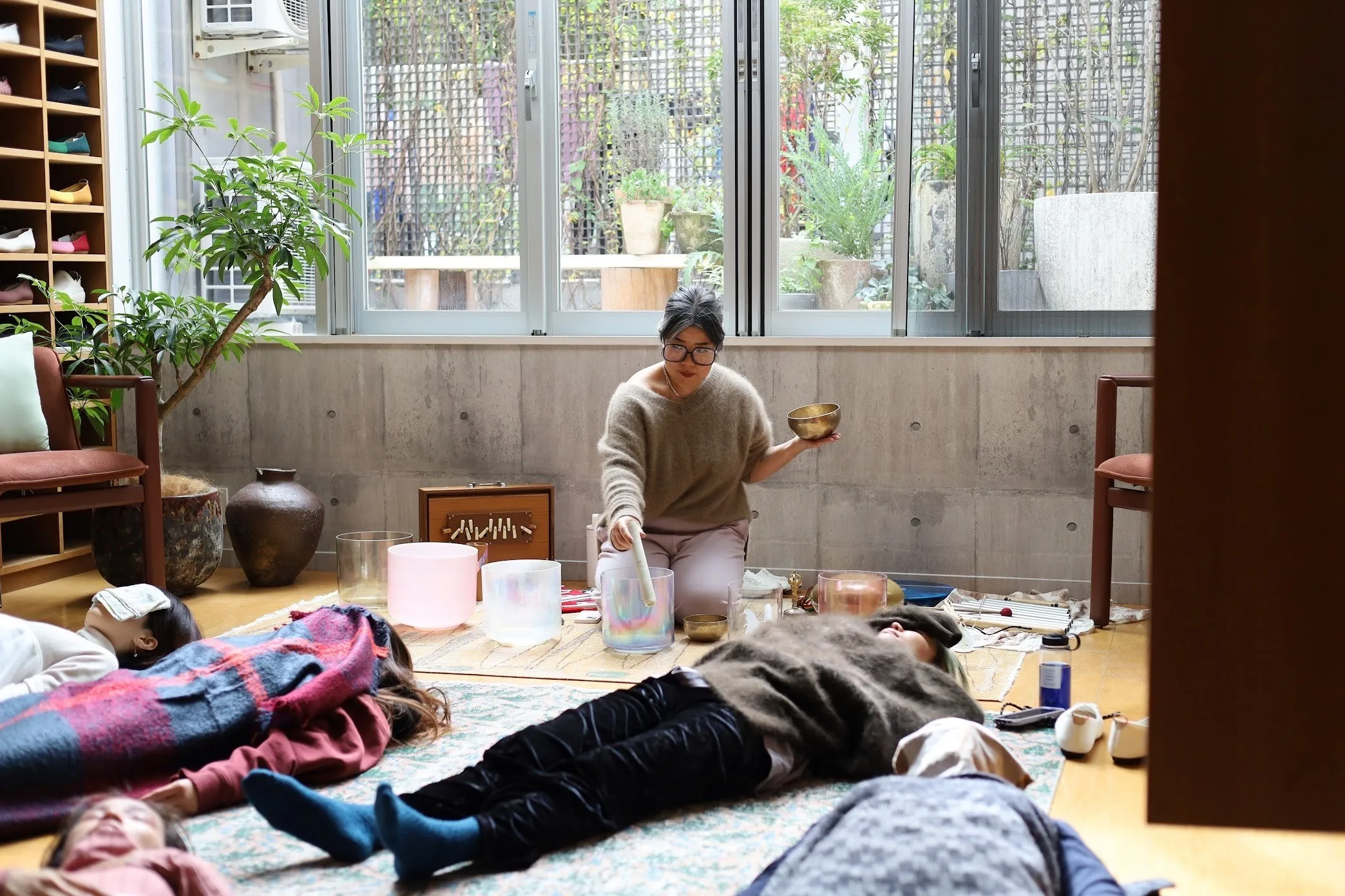 心と身体を癒すために穏やかでありながら強力な治療的および修復的プロセスを誘うために、クリスタルボウルをはじめとした様々な倍音を持つ音を使用する、深い没入型の全身リスニング体験です。