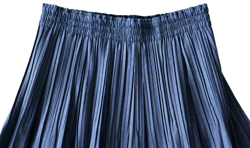 シワになりにくく、自然と収まる場合が多いですが、シワ取りされる場合はスチームアイロンで行い、プリーツ部分への直接のアイロンはお避け下さい。