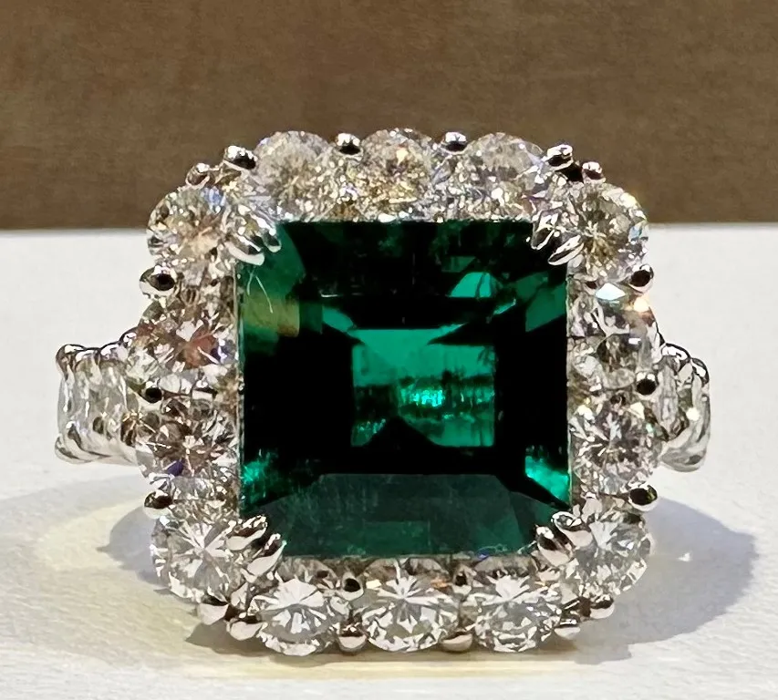 (エメラルド:3.80ct、コロンビア産、GIA鑑別書付、ダイヤ:計2.47ct)