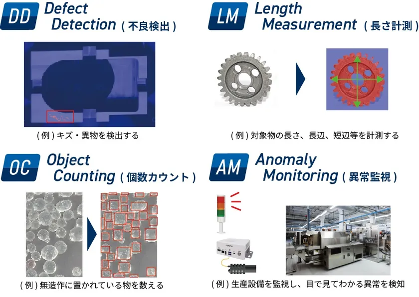 ・AIとルールベースによる自動検査機能(不良検出、長さ計測、個数カウント、異常監視)