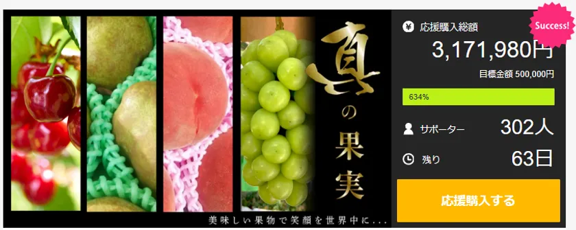 プロジェクトは12月27日時点で応援購入総額300万円を突破、ネクストチャレンジとして引き続き取り組みを進めております。