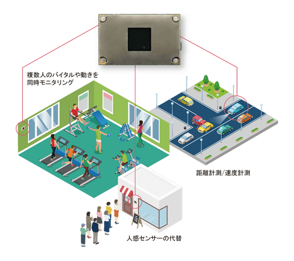 多人数の検出やバイタル監視、動体の速度や距離なども非接触で計測可能に!