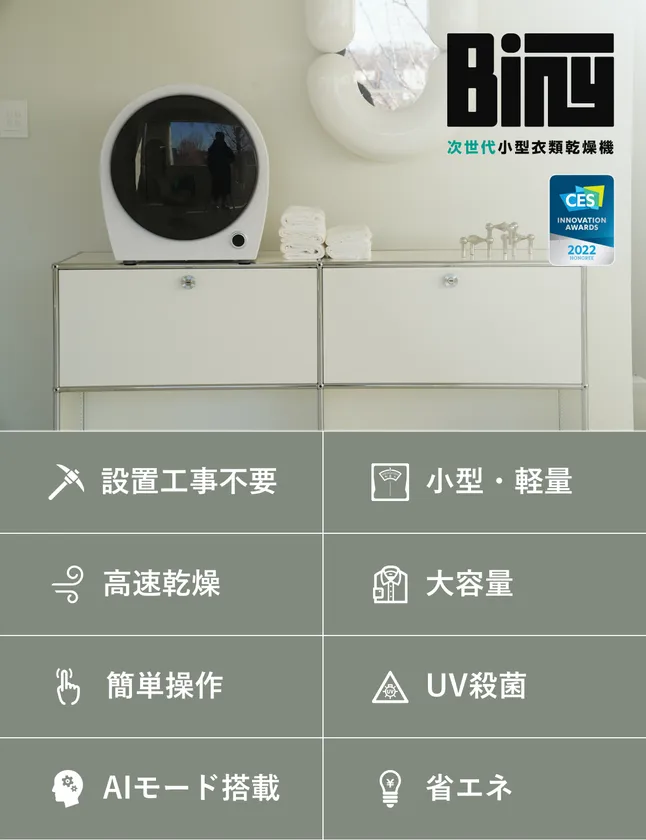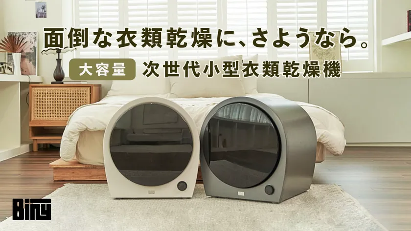 高い乾燥性能・大容量を実現した次世代小型衣類乾燥機 「Biny」が日本上陸!12/28にMakuakeにて先行予約販売開始