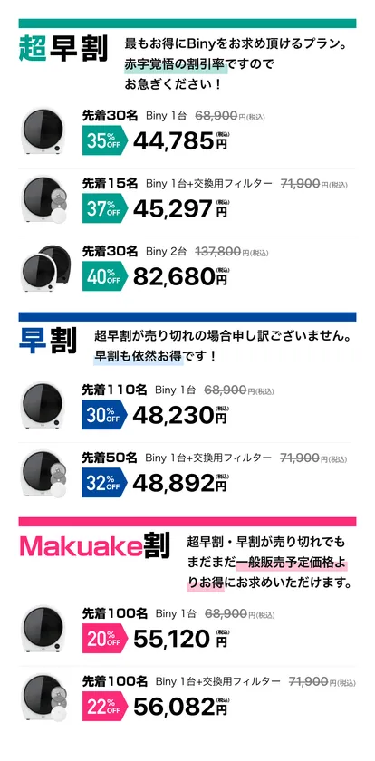 Makuakeプロジェクトページ: https://www.makuake.com/project/biny/