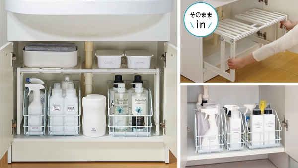 簡単設置!「洗面下フリーラック 伸縮タイプ」