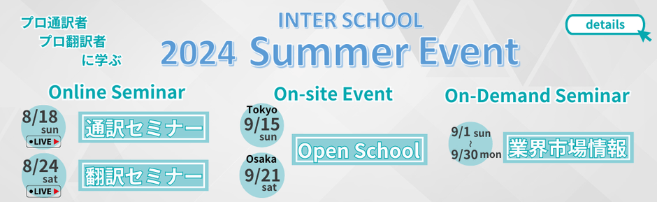 インタースクールではプロ通訳者・翻訳者を目指されている方、語学力のスキルアップを目指されている方に向けた2024 Summer Seminarを開催します。