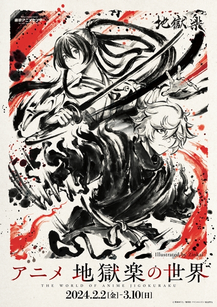 大日本印刷株式会社(DNP)が、一般社団法人日本動画協会(AJA)と共同で運営する「東京アニメセンター in DNP PLAZA SHIBUYA」は、株式会社MAPPAと共同主催のもと「アニメ地獄楽の世界」を開催いたします。 「アニメ地獄楽の世界」では、作品の名シーンを追体験できる展示に加え、本作の原画や中間制作素材など、貴重なプロダクト資料もご覧いただけます。アニメ作中で登場した水墨画を描いているじんかい氏のキービジュアルや本企画展描き下ろしイラストを使用した新規グッズの販売も予定しております。
