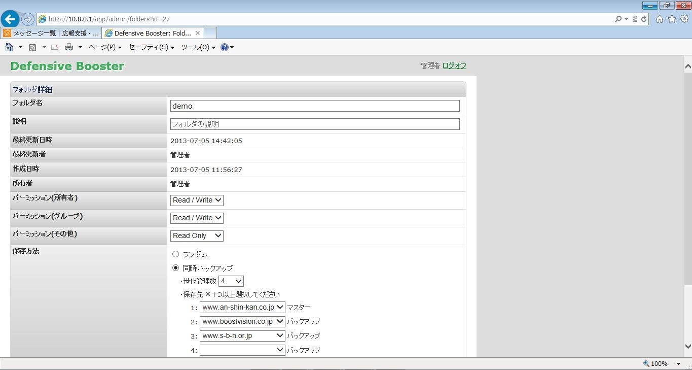 オンラインストレージとSSL VPNを統合したセキュリティシステム。クライアントキャッシュを持たずにファイルの一括コピーを防止するオンラインストレージ機能、多彩なデータ分散バックアップや履歴管理機能、「MediaBooster」をはじめとするWebアプリを外出先の環境から手軽にセキュアに接続するためのVPN、これらを統合したソリューションです。VPNのエンジンは実績のあるオープンソースのOpenVPNを使用しますが、煩雑な証明書の発行や停止を「DefensiveBooster」が代行して初心者でも管理できるようにしています。