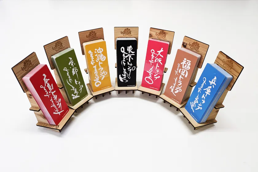 自販機BASEには、東京、福岡、沖縄、京都、兵庫、広島、大阪の7台の自販機が設置されており、それぞれ1種類のご当地トランプが販売されています。
