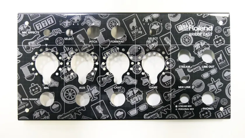 この度ローランドは、オレビバ!とのコラボレーションで「BRIDGE CAST」用のオリジナルフェイスプレートを制作しました。黒地にシルバーのオレビバ!のロゴマークや、メンバーにちなんだアイコンがちりばめられた、個性的ながら高級感のある仕上がりは、ローランド ディー.ジー.社のご協力により実現しました。