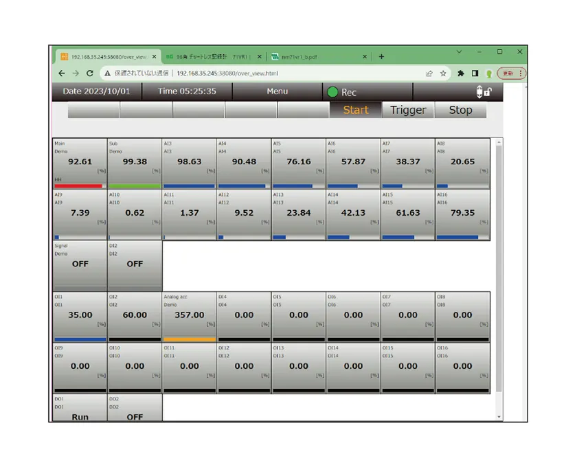 PCレコーダの操作画面は、すでに多くの皆様にお使いいただいている当社製品の「Webロガー2」や「タブレットレコーダ(R)」の操作画面を踏襲しており、慣れ親しんだ操作性でご使用いただけます。