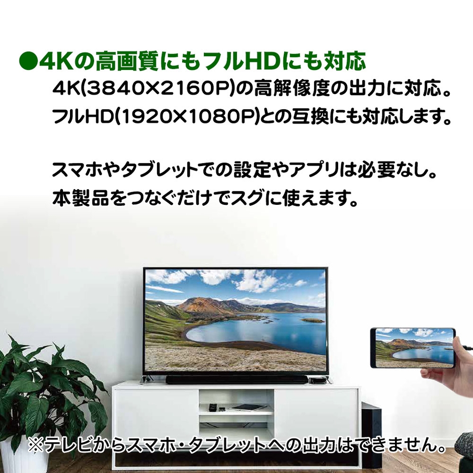 4K(3840×2160/30Hz)の高解像度に対応し、フルHD(1920×1080)との互換にも対応します。